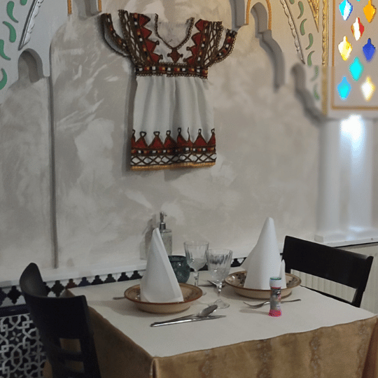 Venez découvrir nos spécialités telles que nos Couscous, nos Tajines du jour, nos bricks croustillantes, nos grillades au feu de bois et nos pâtisseries orientales. Chaque plat est préparé avec soin pour vous offrir une explosion de saveurs.