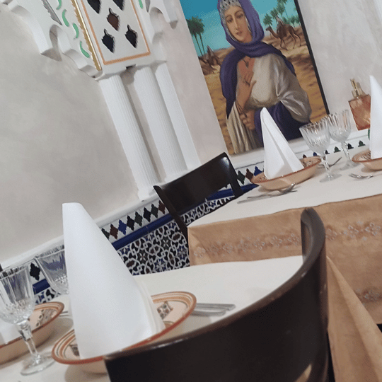 Venez découvrir nos spécialités telles que nos Couscous, nos Tajines du jour, nos bricks croustillantes, nos grillades au feu de bois et nos pâtisseries orientales. Chaque plat est préparé avec soin pour vous offrir une explosion de saveurs.